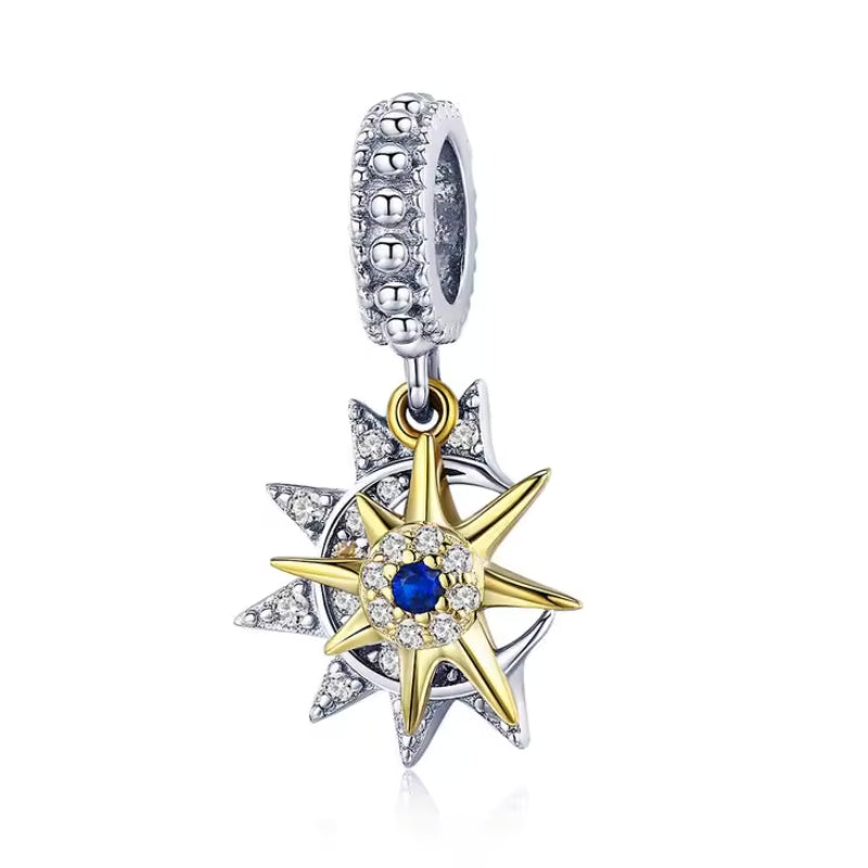 Gefertigt aus echtem 925er Silber, zeigt der Charm feine Gravuren von strahlender Sonne, lieblichem Halbmond und funkelnden Sternen – kunstvoll miteinander verbunden. Dank der praktischen Öse ist der Anhänger sowohl für Charm-Armbänder als auch für Halsketten geeignet.