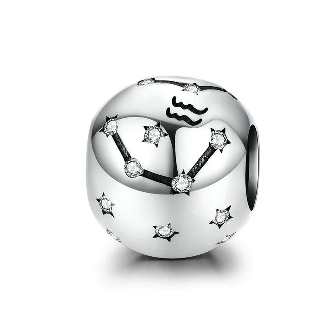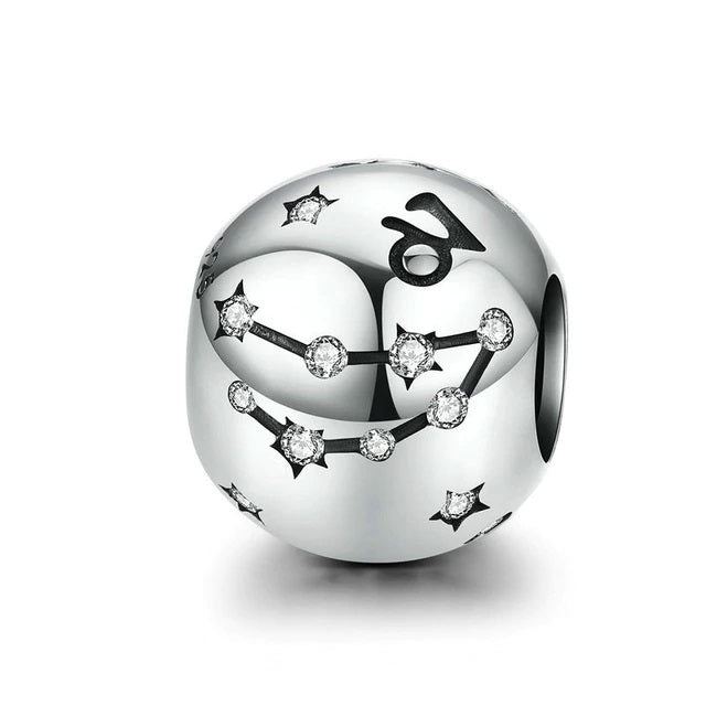 Unser Sternzeichen Charm-Anhänger aus echtem Silber verbindet kosmische Symbolik mit zeitlosem Design. Die filigranen Zirkonia-Kristalle, die als funkelnde Sterne eingearbeitet sind, machen diesen Charm zu einem besonderen Highlight. Lochdurchmesser: Ø 4,5 mm – passend für alle gängigen Charm-Armbänder (z. B. Pandora)