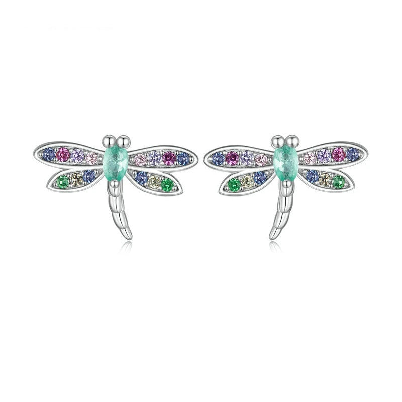 Libellen Ohrstecker aus 925er Silber mit bunten Kristallen in den Flügeln – verspielt, farbenfroh & elegant. 🪰✨